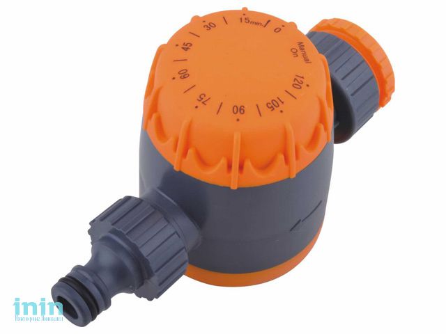 Позволяет устанавливать время полива в диапазоне от 0 до 120 минут. Для непрерывной подачи воды установите таймер в положение "manual on". Внешний адаптер позволяет присоединять таймер к водопроводной трубе или крану с внешней резьбой 3/4' (19 мм) или 1' (25 мм).