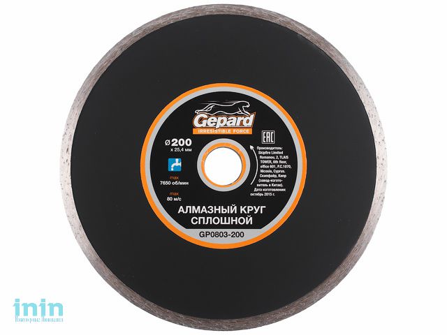 Алмазный круг 200х25.4 мм по керамике сплошн. GEPARD (мокрая резка)