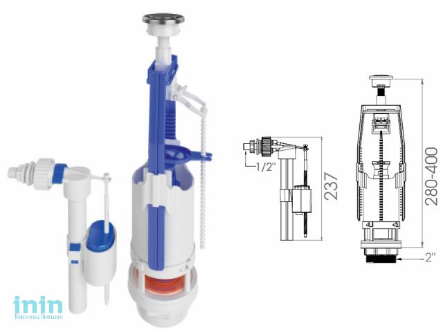 Арматура для смывного бачка универсальная с клапаном боковой подачи, NOVA