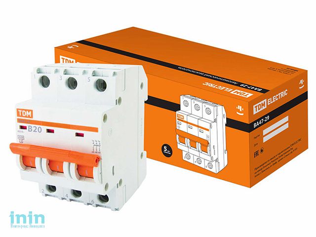 Автоматич. выключатель ВА47-29 3Р 20А 4,5кА х-ка В TDM