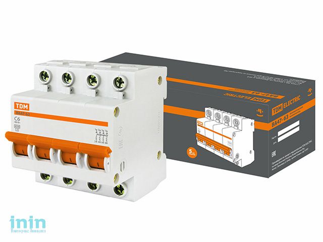 Автоматич. выключатель ВА47-63 4Р 6А 4,5кА х-ка С TDM