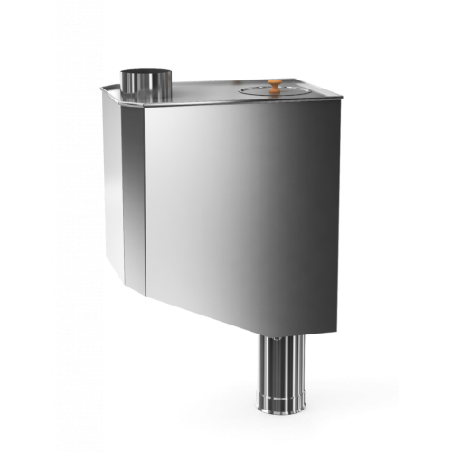 Бак для воды самоварного типа, емкость 70 литров, устанавливается на основание дымохода, имеет два штуцера 1/2'' для слива воды и крышку сверху для заполнения. Ось дымохода смещается на 310мм, что позволяет устанавливать бак на печи у который выход дымохода смещен к передней стенке.