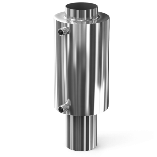 Регистр (теплообменник) для бани. Устанавливается в основании дымохода печи и служит для дистанционного нагрева воды  в выносном баке. Вода греется за счет естественной циркуляции. Емкость регистра 7 литров. Возможные емкости баков - 60 и 80 литров.