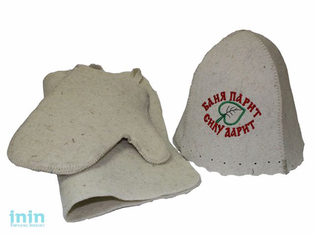Набор для бани из 3-х пр. Шапка"Баня парит силу дарит",коврик,рукавичка ТМ"Бацькина баня"из войл. (БАЦЬКИНА БАНЯ)