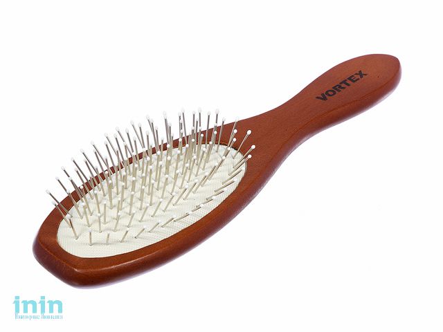 Расческа деревянная, массажная, 22,5х6х3,5 см, "овал", с металлическими зубчиками, VORTEX (ВОРТЕКС)