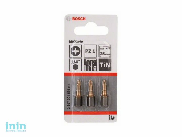 Насадка (бита) крестообразная PZ1 25 мм BOSCH Max Grip в розничн. упак. ( 3 шт.) (посадочн. шестигранник 1/4 ")