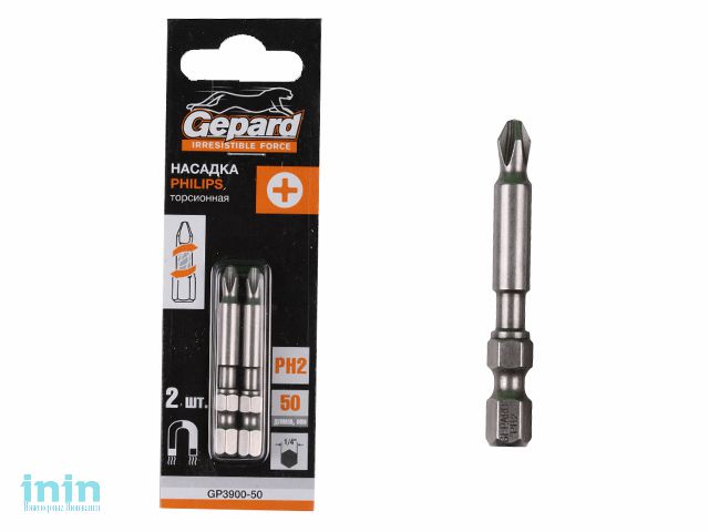 Насадка крестообразная PH2 50мм 2шт торсионная GEPARD (GP3900-50) (бита Phillips сталь S2 магнитная)
