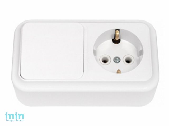 Блок выкл. 1 клав. + розетка (открытая, с/з) белая, Пралеска, BYLECTRICA (Гарантийный срок:24 месяца)
