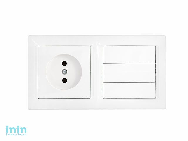 Блок выкл. 3 клав. + розетка (скрытая, б/з) белая, Стиль, Bylectrica (Блок выключатель трехклавишный + розетка скрытой установки Гарантийный срок:24 м