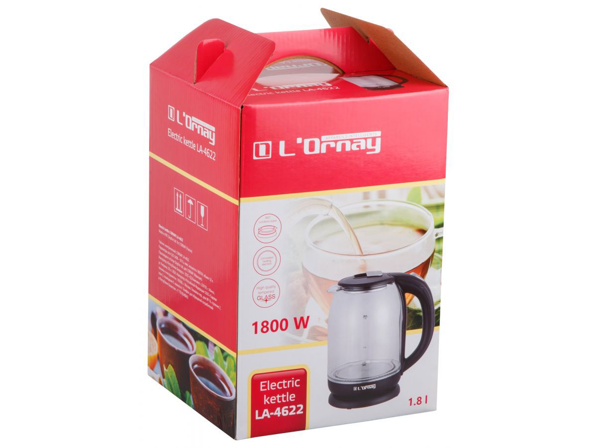 Чайник электрический LA-4622 L'ORNAY (1800 Вт; 1,8 л; стекло; подсветка) (L'Ornay)
