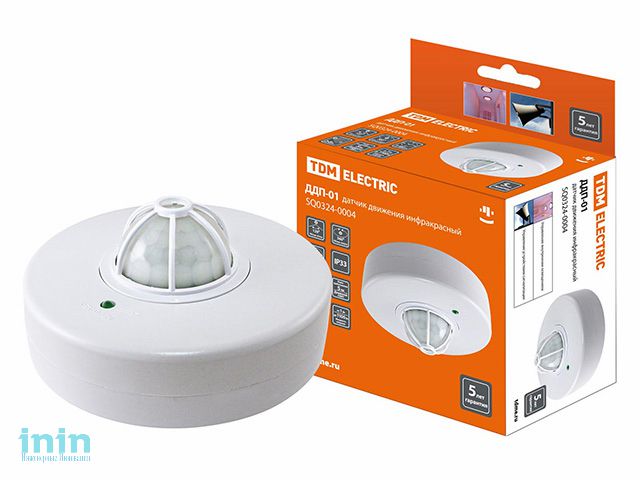 Датчик движения потолочный ДДП-01 1100Вт, 5-480с, 2-8м, 5+Лк, 120(сбоку)+360(сверху) гр, IP33, TDM