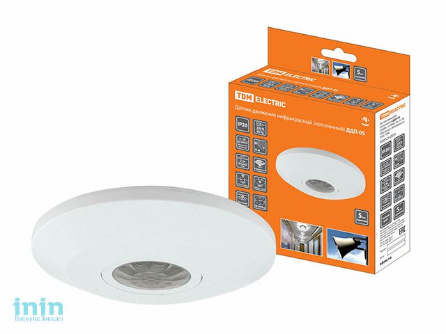 Датчик движения потолочный ДДП-05 2000Вт, 10-900с, 6м , 3+Лк, 120(сбоку)+360(сверху)гр IP20, TDM