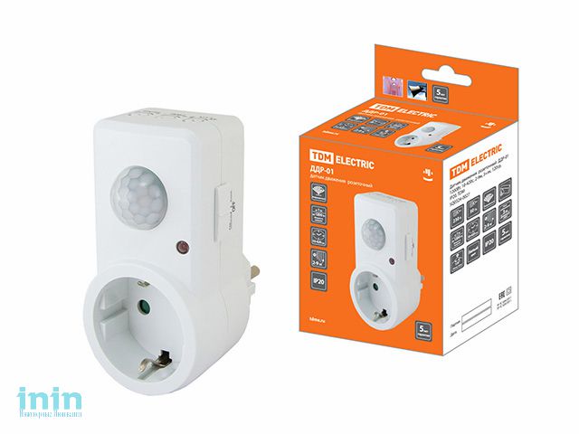 Датчик движения розеточный ДДР-01 1200Вт, 10-420с, 2-9м, 3+лк, 120гр, IP20, TDM