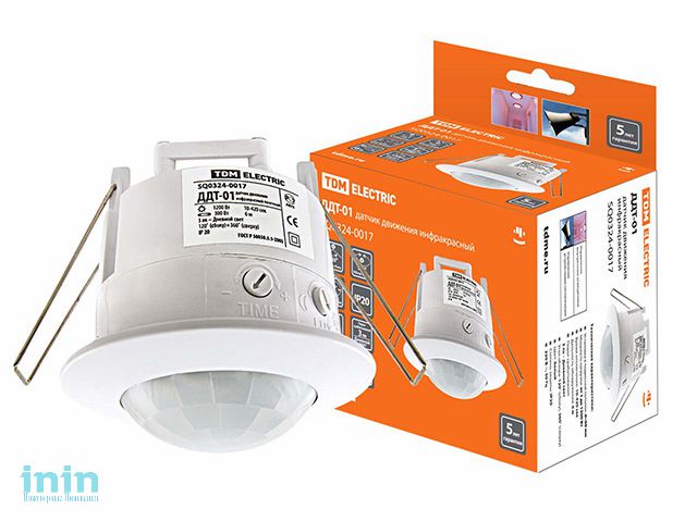 Датчик движения точечный ДДТ-01 1200Вт, 10-420с, 6м, 3+Лк, 120(сбоку)+360(сверху)гр IP20, TDM