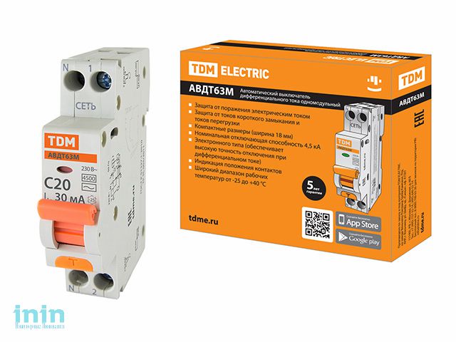Дифф. авт. выкл. 63М C20 30мА TDM
