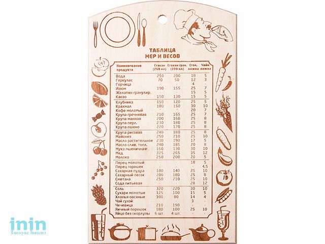 Доска разделочная,"Таблица мер и весов", 30х18,5 см, береза, MARMITON