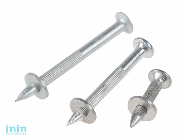 Предназначен для сквозного монтажа металлических и деревянных строительных конструкций к бетонным или кирпичным основаниям при помощи монтажного пистолета. Представляет собой металлический гвоздь, который имеет широкую шляпку и подвижную шайбу в районе острия. Шайба необходима для центровки и фиксации дюбель-гвоздя в монтажном пистолете перед выстрелом. Соединение получается неразборным. Категорически запрещается применять дюбель-гвозди для крепления механизмов и оборудования, подвергающихся вибрационным и (или) динамическим нагрузкам.