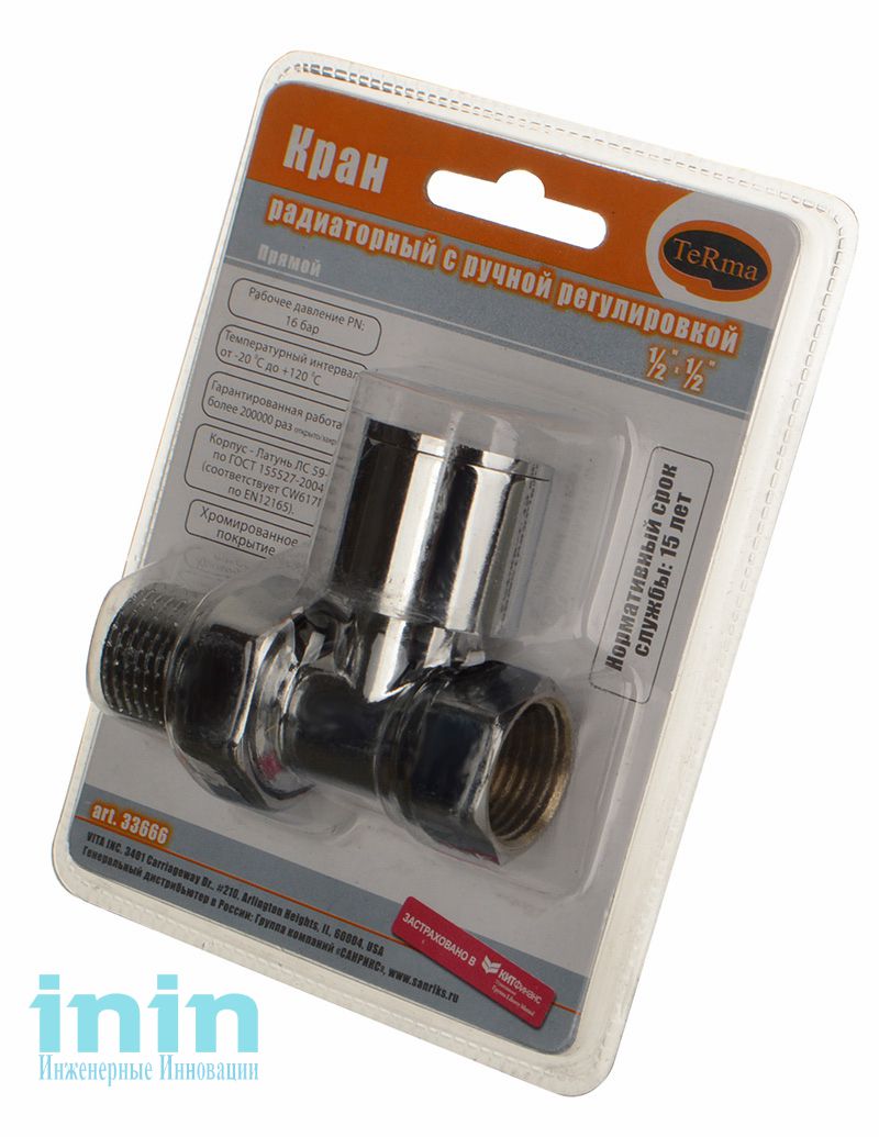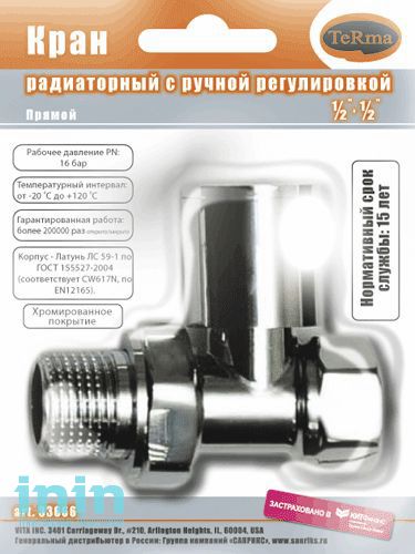 Кран для радиатора прямой с ручной регулировкой TeRma изготовлен с целью регулирования и поддержания необходимой температуры воздуха в комнате, в которой установлен радиатор отопления. Регулирование потока теплоносителя происходит за счет поворота ручки. Ручной кран монтируется в любом положении. Ручной режим является самым простым способом терморегуляции.