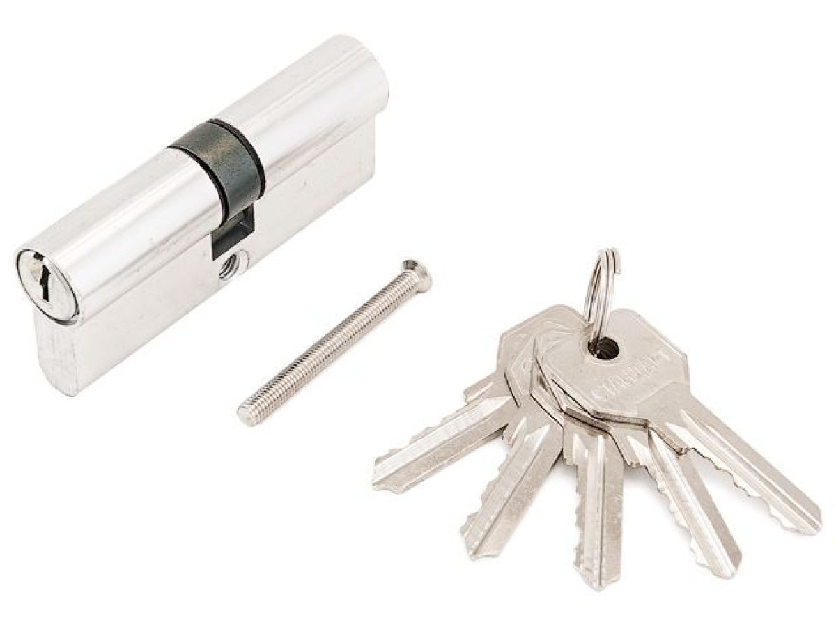 Механизм цилиндровый для врезных замков. Европрофиль. Английский ключ. Материал цилиндра - сталь, цинковый сплав. Ключ-ключ. Выступающий на 30 градусов из плоскости механизма кулачок защищает цилиндр от выбивания из двери. Длина механизма - 90(40x10x40)мм.