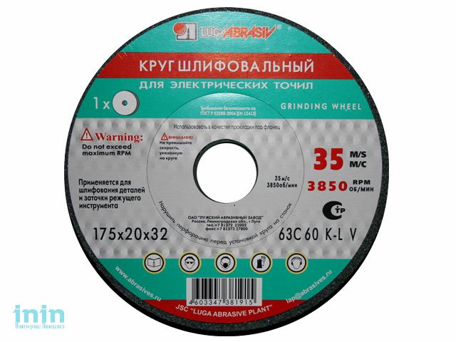 карбид кремния зеленый, 60 шлифзерно, твердость среднемягкие, структура средняя, связкакерамическая, рабочая скорость 35 м/с Обработка твердых материалов с низким сопротивлением разрыву (чугун, бронза, латунь, твердые сплавы, стекло, драгоценные камни, мрамор, гранит, фарфор), а также очень вязких материалов (жаропрочных сталей, сплавов, меди, алюминия).