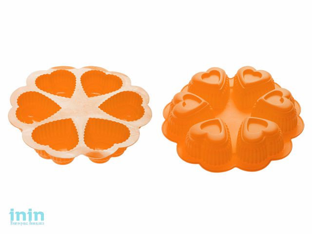 Форма для выпечки, силиконовая, круглая на 6 сердец, 25 х 4.5 см, оранжевая, PERFECTO LINEA