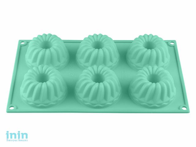 Форма для выпечки, силиконовая, прямоугольная на 6 кексов, 28.5 х 17.5 х 4 см, бирюз, PERFECTO LINEA