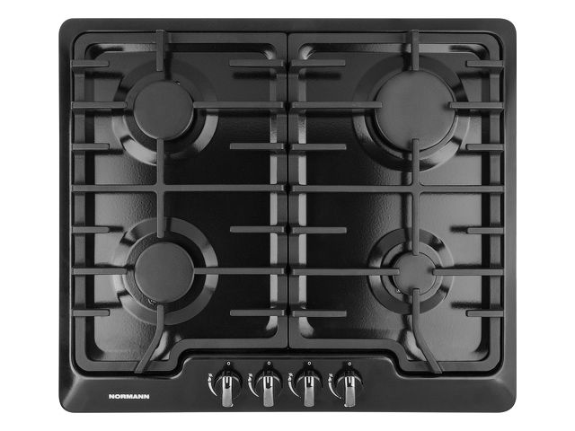 Панель варочная газовая NORMANN BHG-6410A (черный) (4 конф., эмаль, газ-контроль, пьезоподжиг, чугун.реш.)