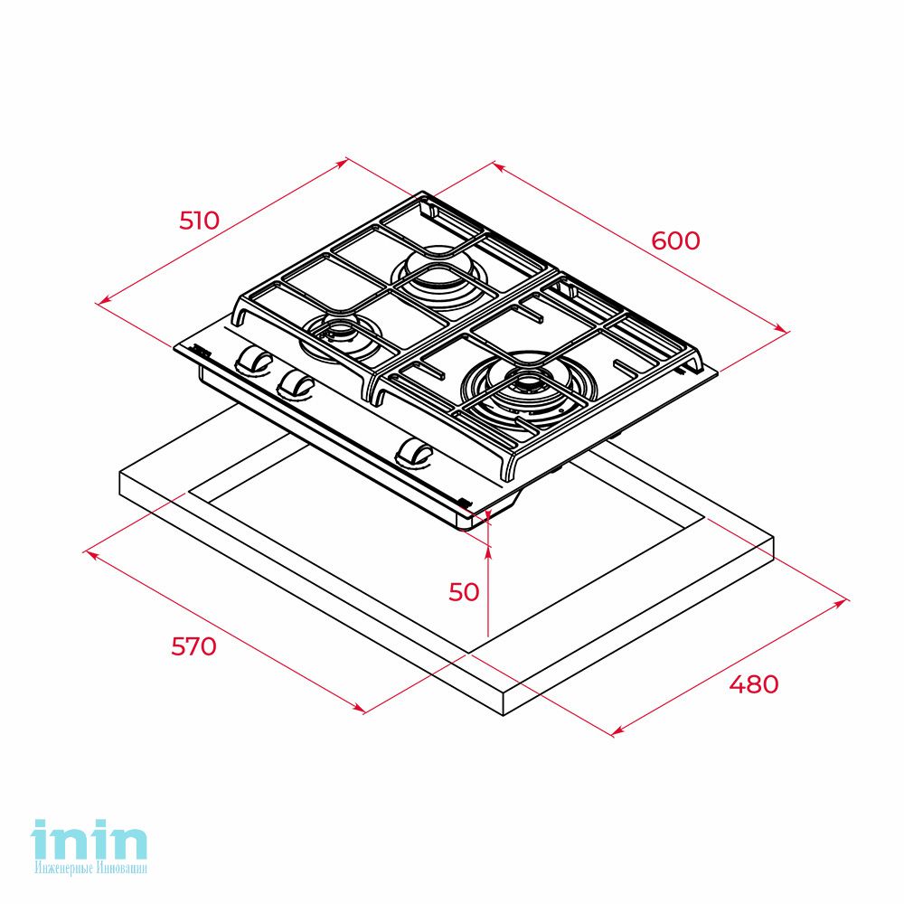 Варочная панель газ на стекле 60 см, чёрная стеклокерамика Schott Ceran 4 мм. с фацетом по переднему краю, эргономичные регуляторы с 9-тью уровнями мощности, высокоточная регулировка пламени, съёмные горелки чёрного цвета Sabaf HE, съёмные чугунные решетки, клипсы для простого монтажа в столешницу без винтов, автоподжиг на каждой горелке, газ-контроль на каждой горелке, 3 зоны приготовления: 1 горелка с двойным кольцом (4 кВт), 1 быстрая горелка (2,8 кВт); 1 вспомогательная горелка (1 кВт), номинальная тепловая мощность: 7,8 кВт, тип газа: LPG (бутан, пропан), природный, размеры 600 х 510 х 50 мм, комбинируется с панелями IZ/TZ/CZ с фацетом по переднему краю высотой 510 мм, планка для комбинирования код 40204394, сделано в Италии