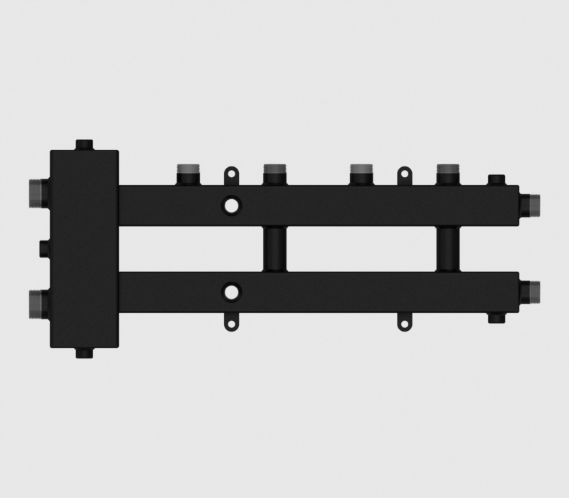 Гидравлический разделитель совмещенный с коллектором Север М2+1 – имеет 3 контура коллектора и обладает номинальной мощностью 70 кВт. Модель используется в отопительных системах, которые имеют несколько контуров отопления. Каждый контур имеет свой насос, тем самым осуществляя баланс давления и расхода. Также с помощью данного устройства осуществляется отделение шлама и высвобождение воздуха, а коллектор поддерживает необходимый расход теплоносителя между всеми контурами. Помимо выполнения главной функции, гидравлический разделитель совмещенный с коллектором имеет несложную конструкцию и произведен из углеродистой стали.