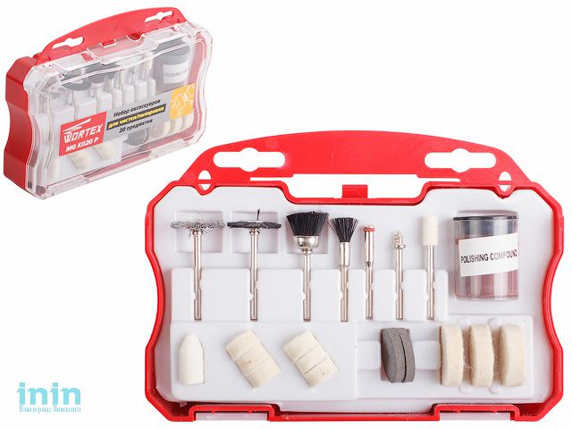 Набор аксессуаров для гравера 20 предметов в боксе (для чистки/полировки) (WORTEX)