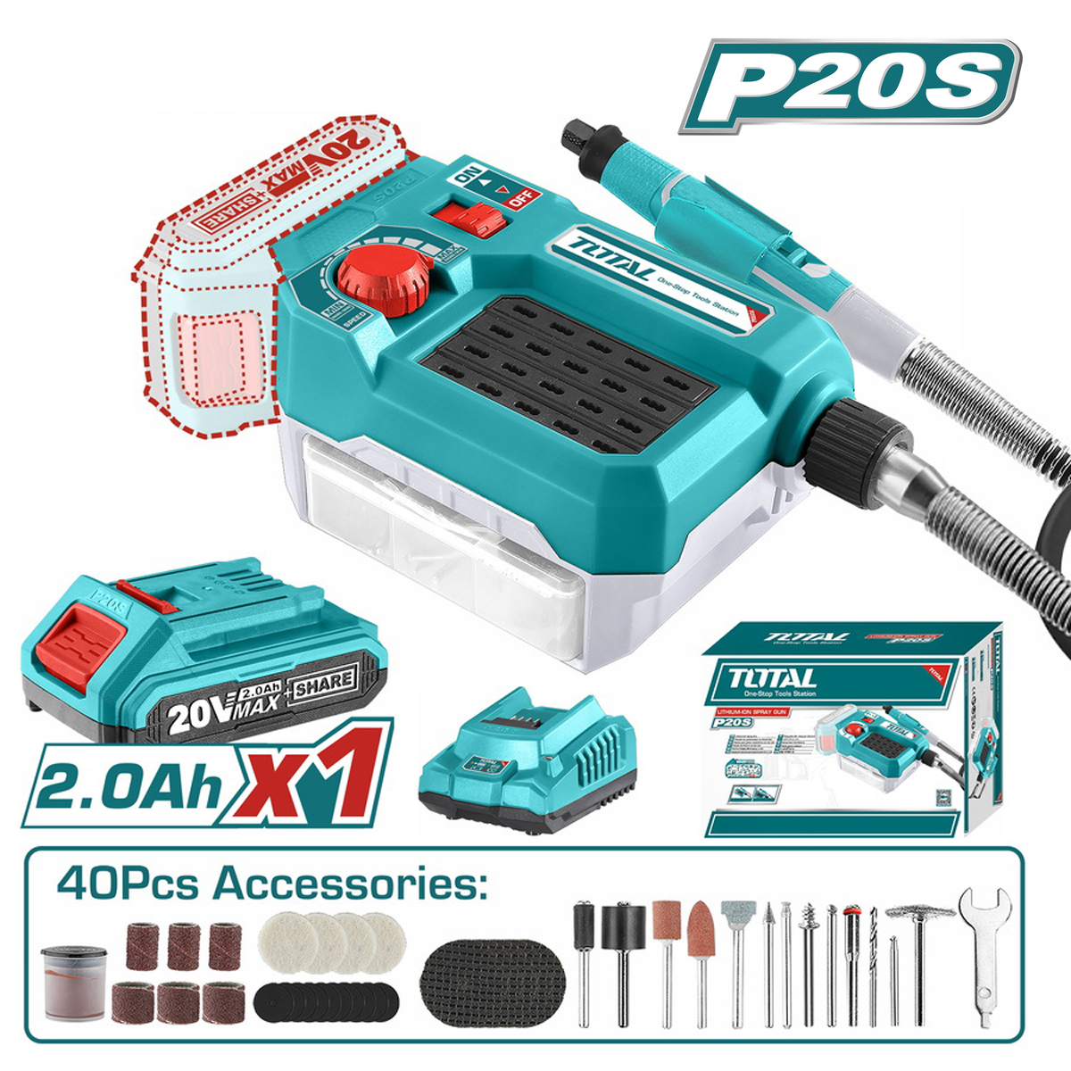 Характеристики: 20V; Обороты 5000-33000; Размер цанги 3.2мм;