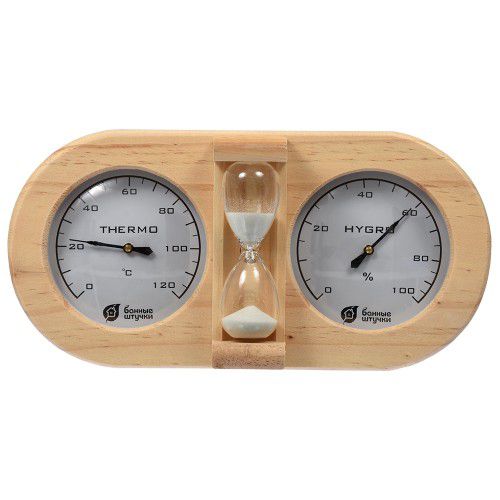 Термометр и гигрометр для бани с песочными часами арт.18028