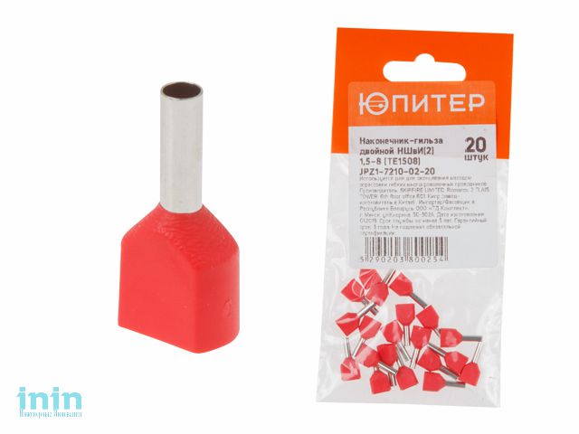 Наконечник-гильза двойной НШвИ(2) 1,5-8 (TE1508) (20 шт) Юпитер (с изолированным фланцем) (ЮПИТЕР)