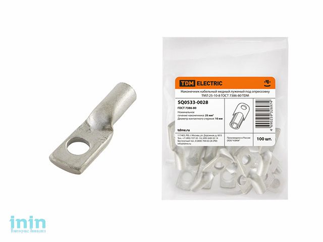 Наконечник кабельный медный луженый под опрессовку ТМЛ 25-10-8 (100шт/уп) TDM (ГОСТ 7386-80)