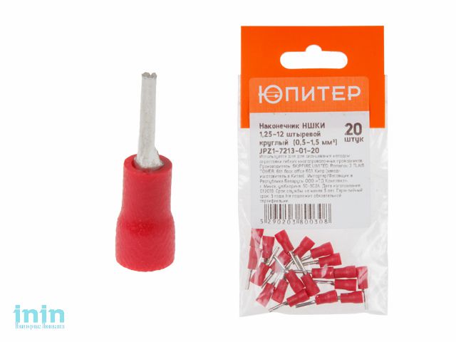 Наконечник НШКИ 1,25-12 штыревой круглый (0,5 - 1,5 мм2) (20 шт) Юпитер (ЮПИТЕР)