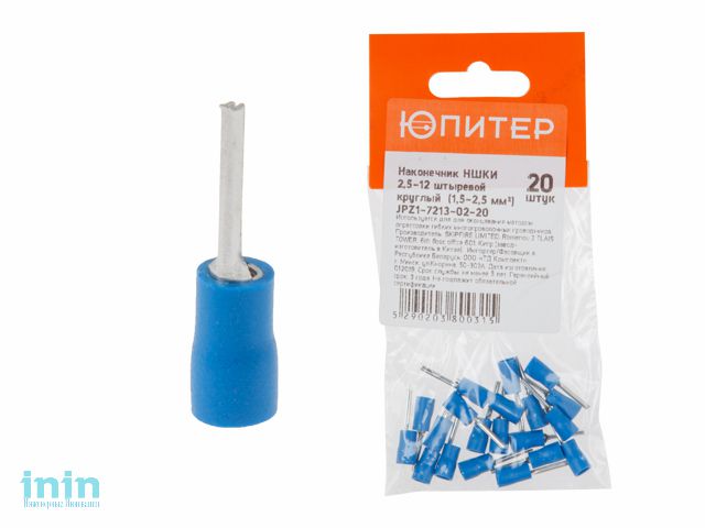 Наконечник НШКИ 2,5-12 штыревой круглый (1,5 - 2,5 мм2) (20 шт) Юпитер (ЮПИТЕР)