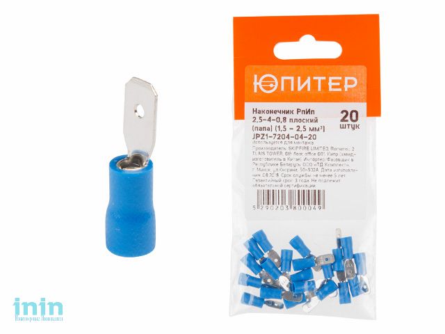 Совместимые товары: JPZ1-7204-02-20 Наконечник РпИм 2,5-5-0,8 плоский (мама) (1,5 - 2,5 мм2) (20 шт) Юпитер;