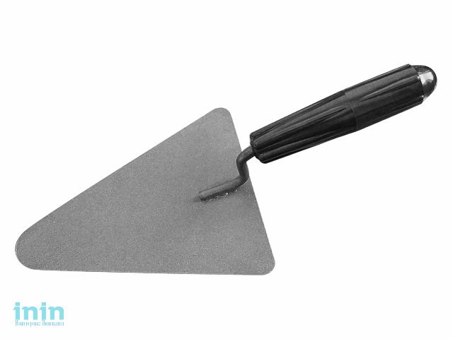 Кельма бетонщика имеет рабочее полотно треугольной формы. Используется при кладке кирпича, а также для отмеривания и нанесения цементного раствора.