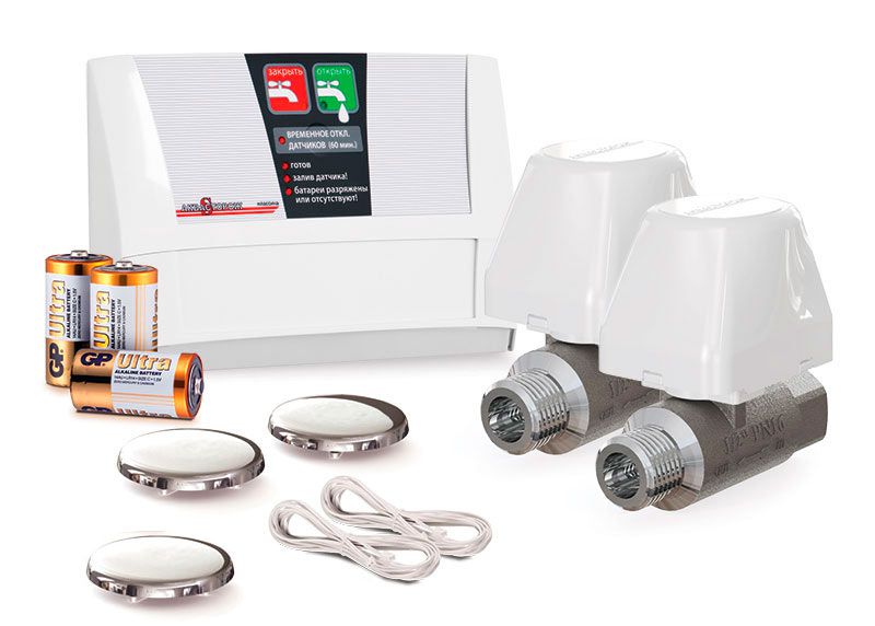 Система защиты от протечек воды предназначена для установки в домах и квартирах, подключенных к системам водоснабжения. Она предотвратит последствия аварий, связанных с водоснабжением, которые могут произойти в Вашем доме, вне зависимости от того, что явилось причиной аварии - незакрытый вовремя смеситель, лопнувшая труба, выход из строя бытовой техники и т.д. Современная электроника, процессор NEC (Япония). Комплектция: 2 шаровых электрокрана 1/2" (15мм), контроллер Классика, 4 проводных датчика Классика, провода 4 м, блок питания 5.5 В, 3 батареи R14, крепеж. Любой набор может быть укомплектован контроллером Аквасторож Классика PRO. Базовые контроллеры Аквасторож Классика могут быть усовершенствованы до версии PRO путем установки энергонезависимого реле и клеммников.