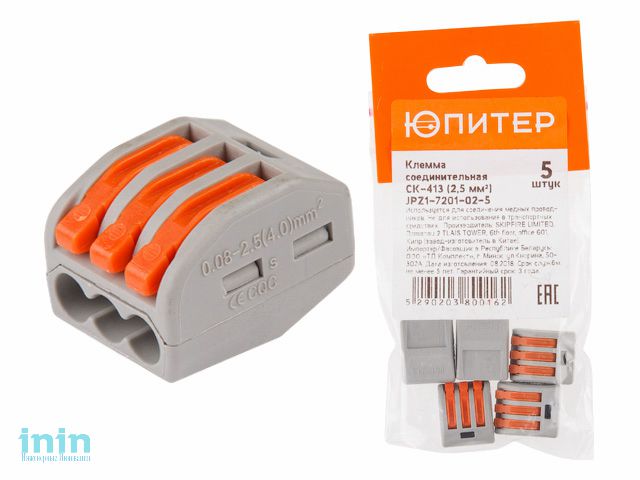 Клеммы соединительные ЮПИТЕР обеспечат быстрый монтаж и демонтаж проводников без дополнительных инструментов благодаря рычажку. Используется для соединения медных одножильных или многожильных проводников, для монтажа проводников в распределительной коробке, подключения светильников и другого оборудования.