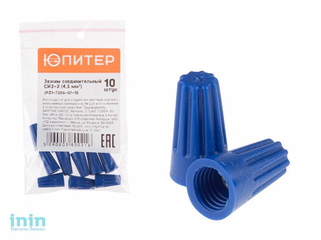 Зажим соединительный изолирующий СИЗ-2 (4,5 мм2) (10 шт) Юпитер (синий) (ЮПИТЕР)
