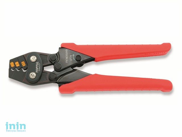 Клещи зажимные TOPTUL изготовлены из высокопрочной закаленной стали и предназначены для опрессовки не изолированных клемм на провода с площадью поперечного сечения 1,25 мм, 2 мм и 3,5 мм. А удобные ручки с анти-скользящим покрытием обеспечивают надежный хват инструмента. Рекомендуется для профессионального использования.