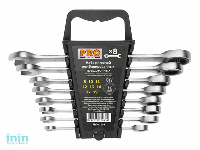 Набор ключей комбинир. 8-19мм 8шт трещоточных PRO STARTUL (PRO-7108) (сатинированное покрытие, 72 зуба)