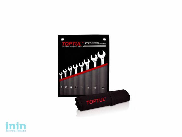 Набор ключей комбинир. 8-22 мм 15° 8 шт , высокопрочные, в сумке (цвет: чёрный) TOPTUL (GPCX0801)
