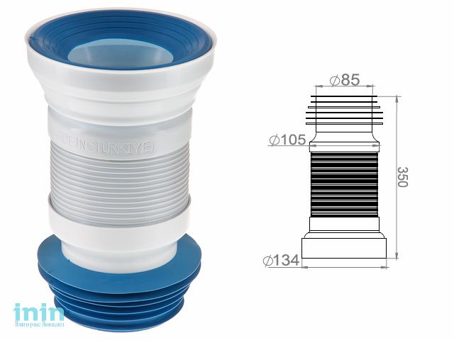 Благодаря своей гибкости и эластичности гофра для унитаза позволяет смонтировать унитаз в удобном для вас месте и с разным удалением от канализационного стояка.