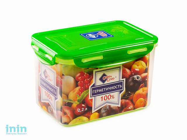 Контейнер пласт.прямоуг. 2,2л прозр. дно/цв.крышка, Good&Good (2,2л)