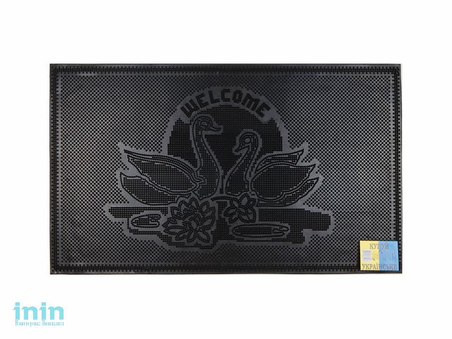 Коврик придверный 75х45 см, черный, "Welcome лебеди", TM YPgroup (Размер 75х45 см. Материал: вулканизированная непористая резина.)