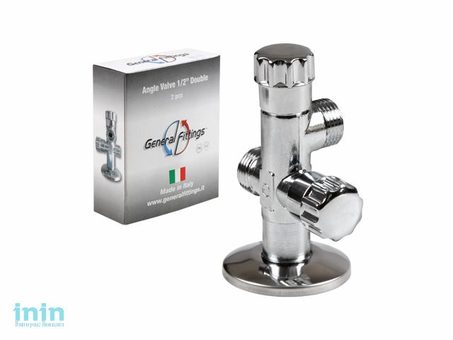 Двойной угловой вентильный кран от General Fittings используется в водопроводных системах питьевого и горячего водоснабжения жилых зданий.