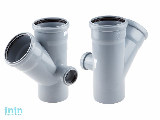 Крестовина двухплоскостная канализационная Ростурпласт диаметром 110 мм под углом 45 градусов для монтажа систем внутренней канализации. Имеет выход с правой стороны под трубу 50 мм