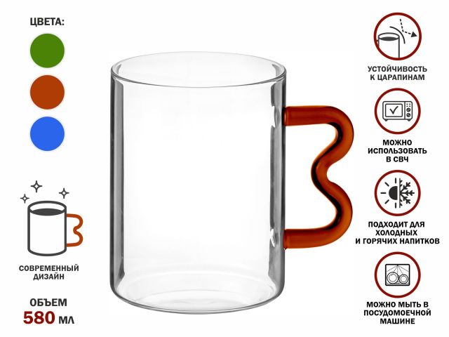 Кружка стеклянная, 580 мл, серия Jelly, PERFECTO LINEA (30-400011)